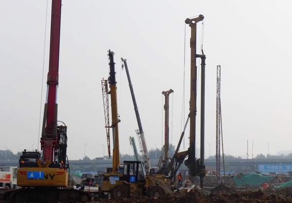 濟南西部會展中心,占地332畝,其中地上建筑22.6萬平方米,總建筑面積55萬平方米,是濟南又一個地標(biāo)式建筑。圖為我公司正在施工樁基礎(chǔ)