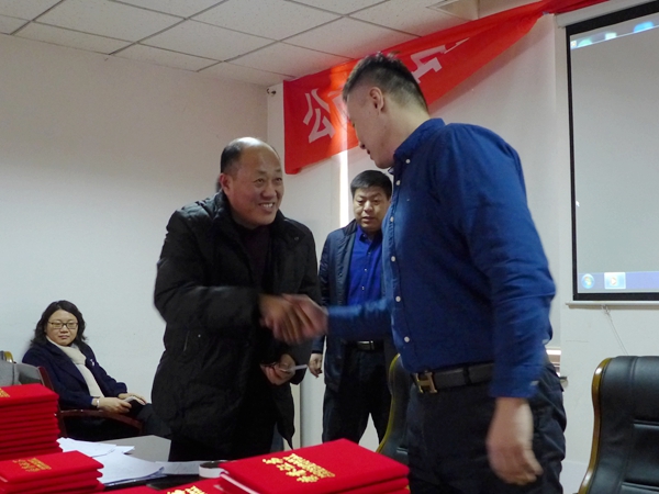 會上,監(jiān)事會劉建明做了監(jiān)事報告,總會計師徐占泉做財務報告;董事長與內(nèi)部分公司承包人簽訂了2018年度承包責任書、并表決通過了多項工作報告和方案。