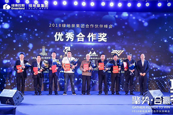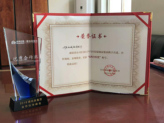 祝賀戰(zhàn)略合作伙伴綠地泉集團(tuán)授予公司優(yōu)秀合作獎(jiǎng)