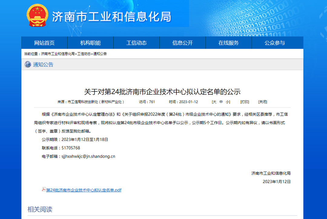 根據(jù)《濟(jì)南市企業(yè)技術(shù)中心認(rèn)定管理辦法》和《關(guān)于組織申報(bào)2022年度(第24批)市級(jí)企業(yè)技術(shù)中心的通知》要求,經(jīng)相關(guān)區(qū)縣推薦,市工信局組織專家進(jìn)行材料評(píng)審和現(xiàn)場(chǎng)考察,山東省機(jī)械施工有限公司獲評(píng)濟(jì)南市企業(yè)技術(shù)中心。