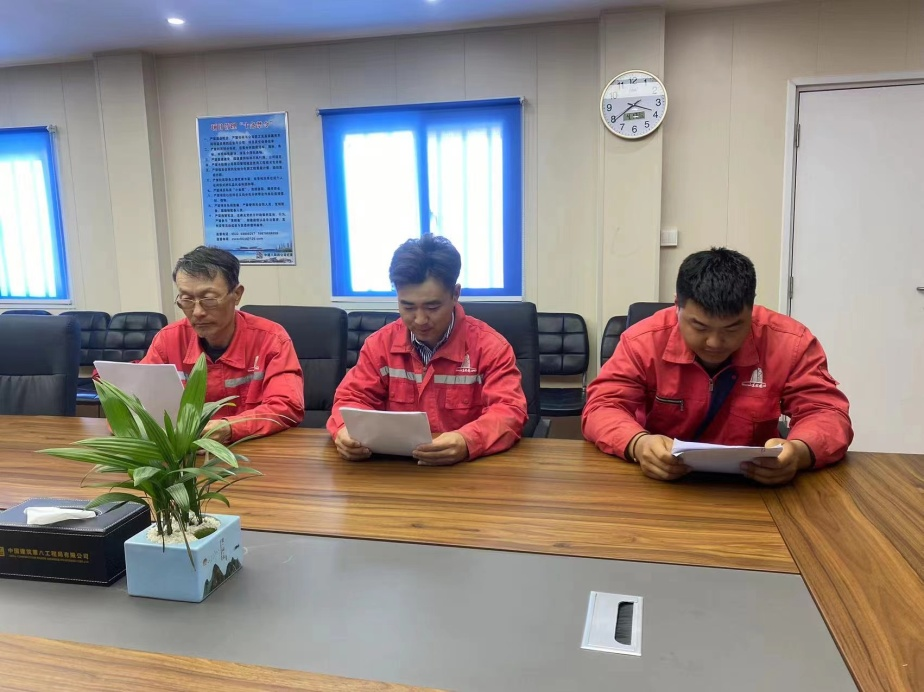 巖土分公司青島上合廣場指揮部學(xué)習(xí)傳達生產(chǎn)會精神。
