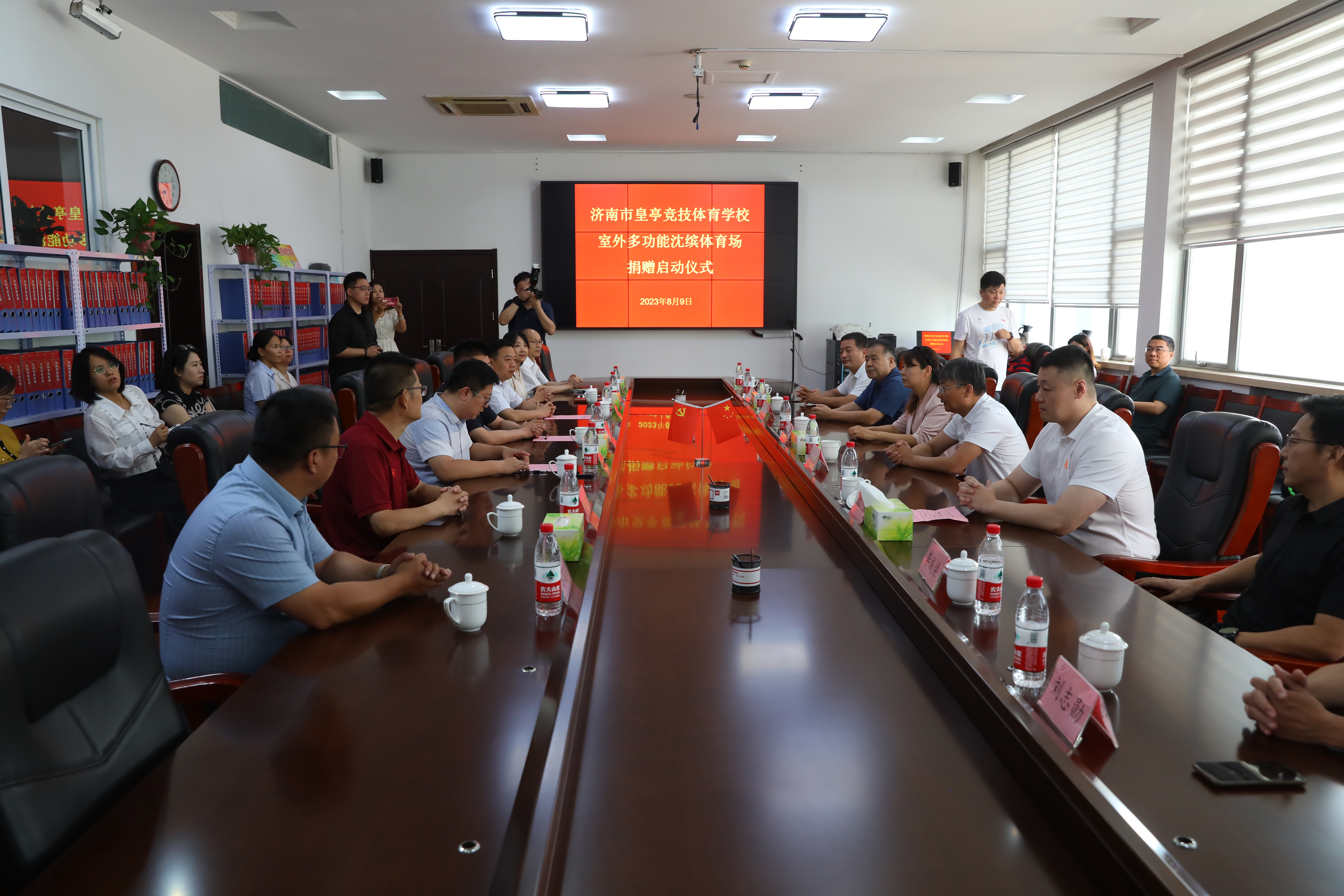 捐建儀式上,王建軍副局長、王啟濤書記表達(dá)了對(duì)沈繽董事長的感謝,表示在接下來的各項(xiàng)工作中,濟(jì)南市皇亭競技體育學(xué)校進(jìn)一步提高政治站位,繼承和弘揚(yáng)體育精神,腳踏實(shí)地、拼搏進(jìn)取,認(rèn)真踐行黨的二十大精神,利用好這個(gè)體育場,講好體育故事,搞好體育訓(xùn)練,用更優(yōu)異的成績回報(bào)社會(huì)。同時(shí),也希望更多的人能夠像沈繽先生一樣,心系母校、心系濟(jì)南體育,加強(qiáng)溝通與合作,切實(shí)為濟(jì)南市體育事業(yè)的發(fā)展作出積極貢獻(xiàn)。