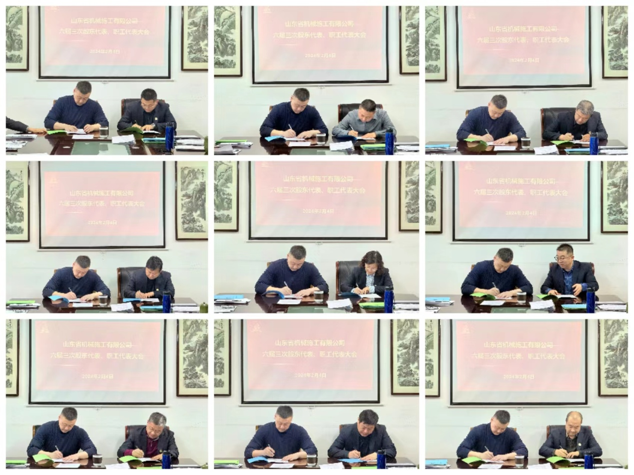 2024年2月4日,山東省機(jī)械施工有限公司第六屆三次股東代表、職工代表大會(huì)在公司會(huì)議室召開。公司股東代表、職工代表、先模代表近40余人參會(huì)。會(huì)議審議通過了董事長(zhǎng)行政工作報(bào)告、監(jiān)事報(bào)告、財(cái)務(wù)預(yù)決算報(bào)告等事項(xiàng);會(huì)上沈繽董事長(zhǎng)與各承包人簽訂2024年承包合同;表彰了2023年度先進(jìn)單位和個(gè)人;動(dòng)員全體職工在新的一年統(tǒng)一思想、堅(jiān)定信心、再創(chuàng)佳績(jī),為努力開創(chuàng)山東機(jī)施各項(xiàng)工作新局面做出更大的貢獻(xiàn)。
