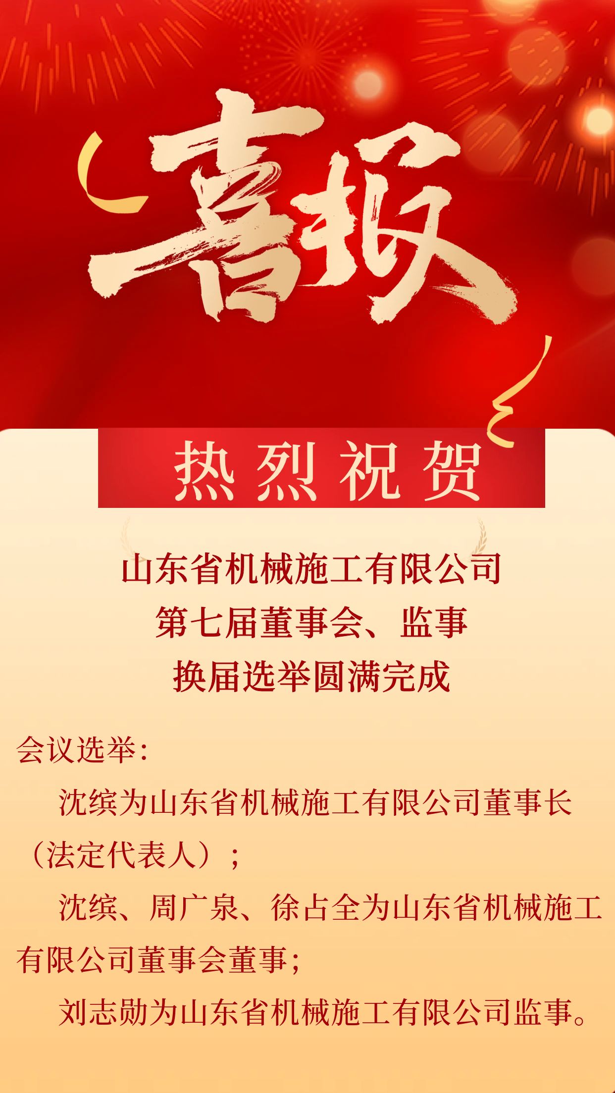 山東省機械施工有限公司第七屆董事會、監(jiān)事?lián)Q屆選舉圓滿完成