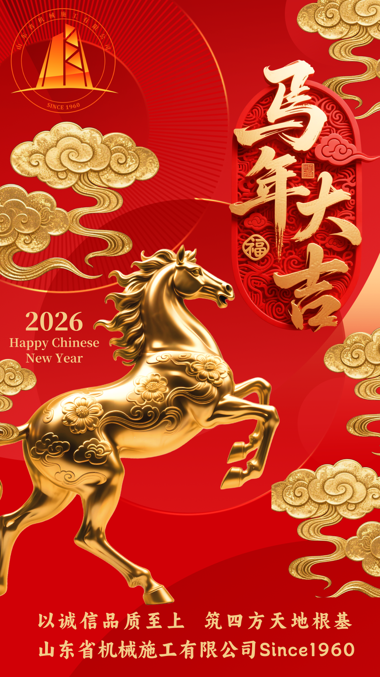 值此辭舊迎新的美好時(shí)刻,山東省機(jī)械施工有限公司謹(jǐn)向長(zhǎng)期以來(lái)關(guān)心支持公司發(fā)展的各級(jí)領(lǐng)導(dǎo)、各界合作伙伴以及全體員工及家屬,致以最誠(chéng)摯的祝福!